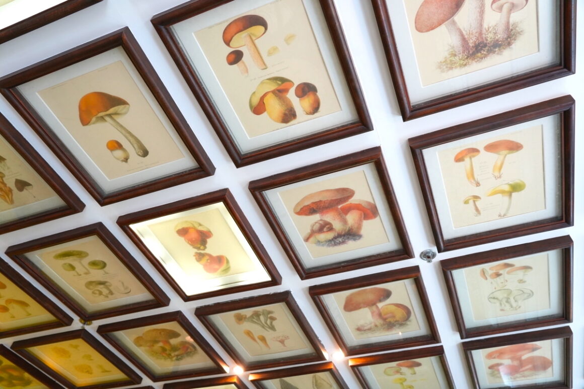 SPA 的工作人員制服超可愛,就像《愛麗絲夢遊仙境》裡走出來的人物,我們都忍不住想穿上它(笑)。入口處用木箱與木櫃展示各式豐富的蕈菇,牆面還繪有黑白蕈菇植物寫生,細節美得讓人驚喜。