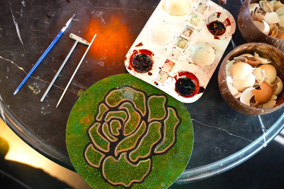 我們參加了漆器課,首先挑選喜歡的圖案,接著在老師的指導下敲碎蛋殼、細心上膠,一片片鋪貼出層次與光澤。當作品完成時,大家都愛不釋手,滿滿的成就感與樂趣!