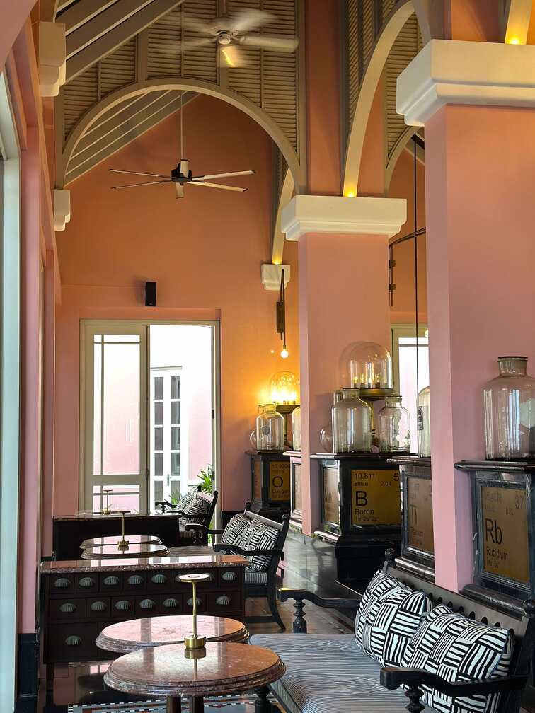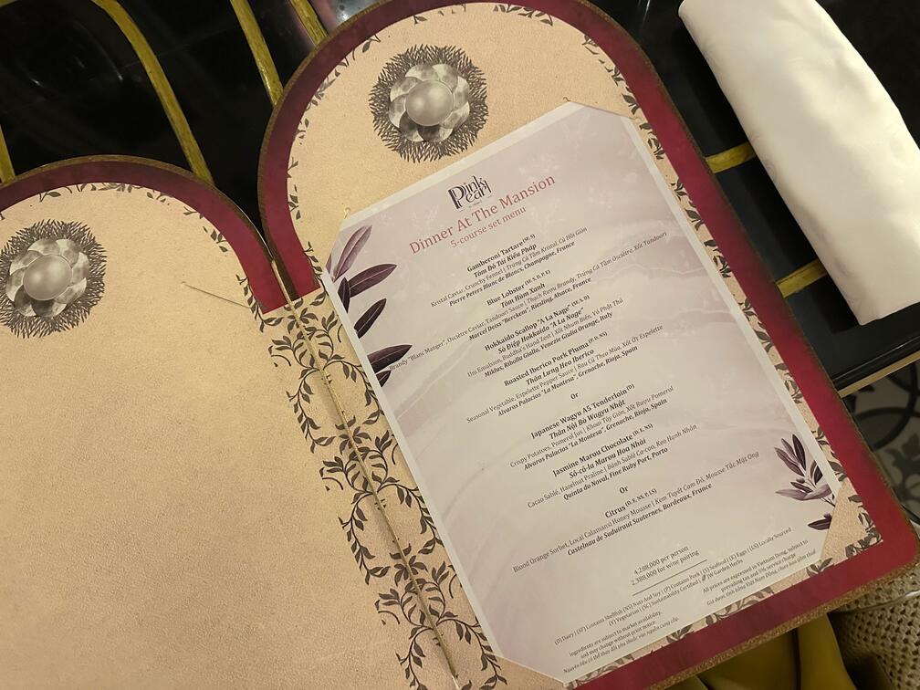 由擁有 30 顆米其林星的主廚 Olivier Elzer 與主廚 Danny Do用心打造的高級餐廳 Pink Pearl by Olivier E. 可以說是富國島上最受歡迎的Fine Dining!餐廳坐落於華麗的粉色豪宅中(超夢幻),以二十年代的奢華風格為靈感,高挑的天花板、復古水晶吊燈與精選古董,無不彰顯典雅氣息。