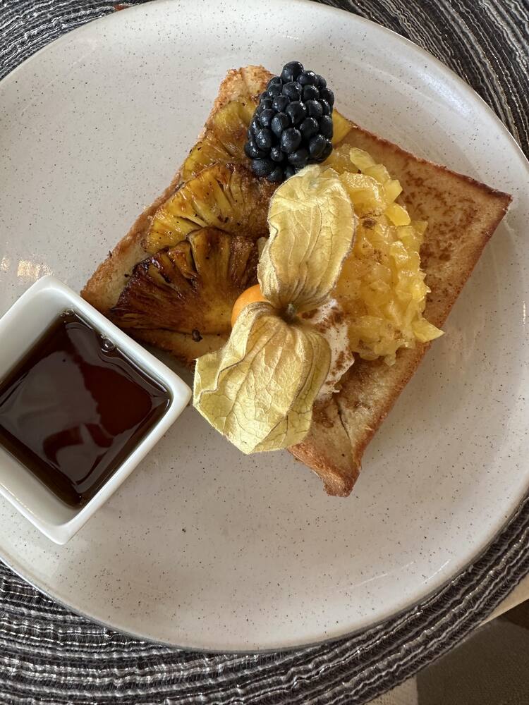 度假村的餐廳也表現得可圈可點:早餐我們分別在全日餐飲中心 The Gallery 以及 The Club用餐。充滿活力的全日餐飲中心,提供自助餐並有部分可現點,餐點類型非常國際化,空間十分通透,可以望向遠方的海。自助餐形式,用餐時間可以自己掌握,若當日上午有安排課程或出海行程,適合來The Gallery用早餐。