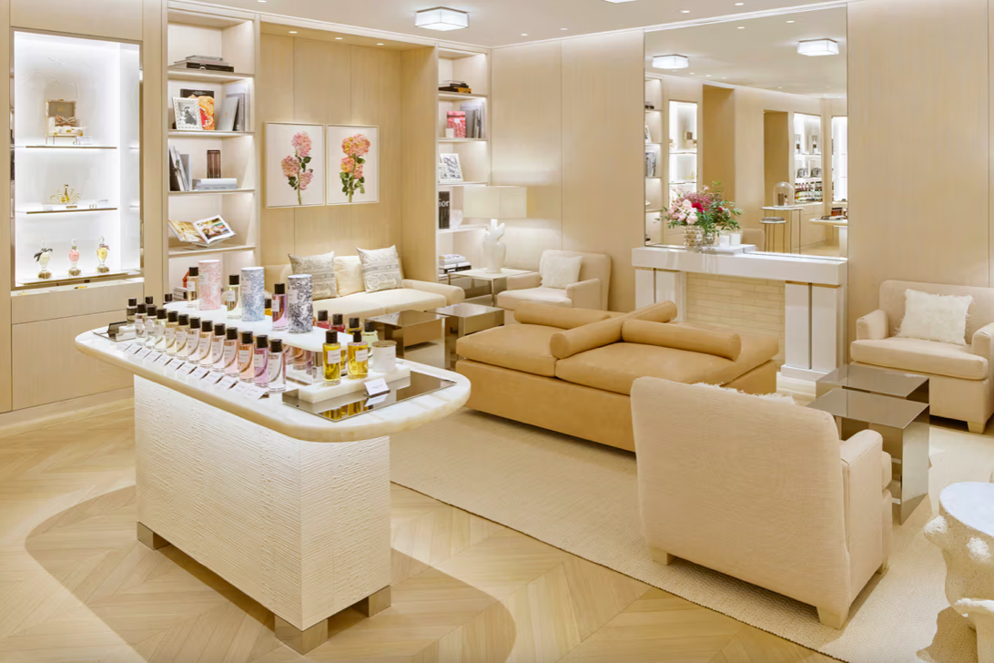 四間護理房:以 Dior 歷史中的重要地點與時刻命名,如 Granville(創辦人故鄉)、1947 / New Look(品牌首個系列)、Lily of the Valley(鈴蘭花意象)。