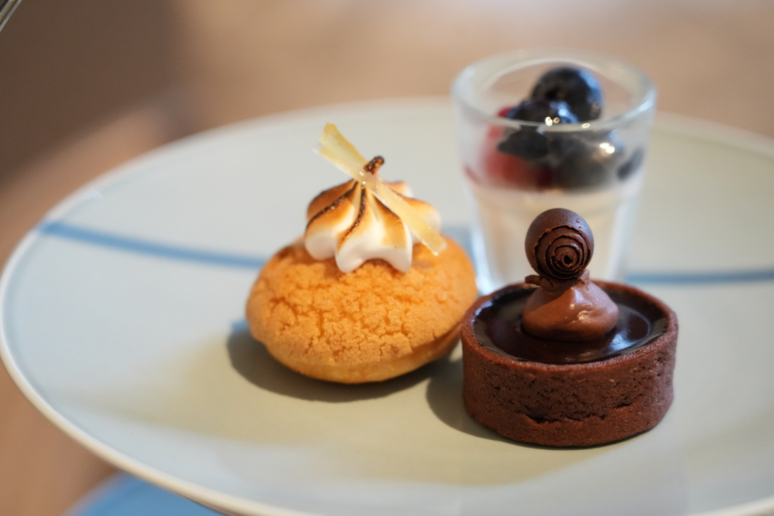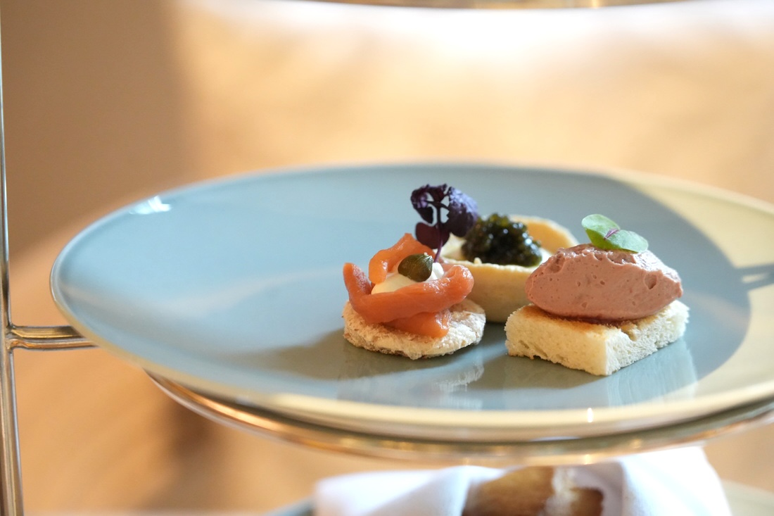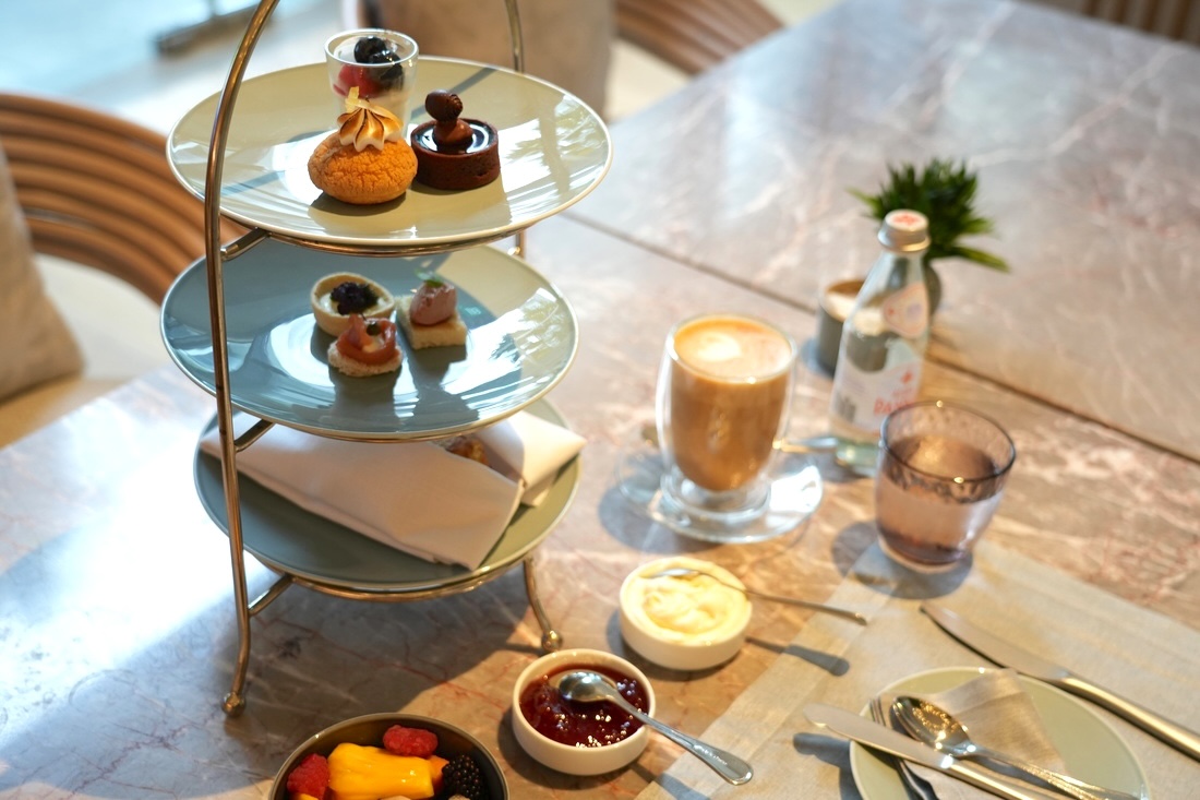 這裡提供的下午茶點心雖然精簡,卻每一道都極盡精緻。從層次分明的法式甜點、鹹香適口的迷你三明治,到四季飯店最引以為傲、外酥內軟的熱騰騰司康。當濃郁的克羅地亞奶油(Clotted Cream)與自製果醬在舌尖化開,那是忙碌旅程中最溫柔的慰藉!如果你想來點道地的小點,也有提供鹹蛋魚皮餅乾喔(笑)