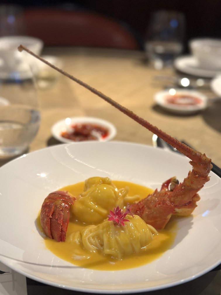 上湯澳洲龍蝦燜稻庭麵令人難忘!以頂級食材熬製出的高湯呈金黃色澤,濃縮了海洋的鮮甜,每一根順滑的稻庭麵都飽滿地吸附了精華,與彈牙的澳洲龍蝦肉交相輝映,實在是極致奢華的體現!