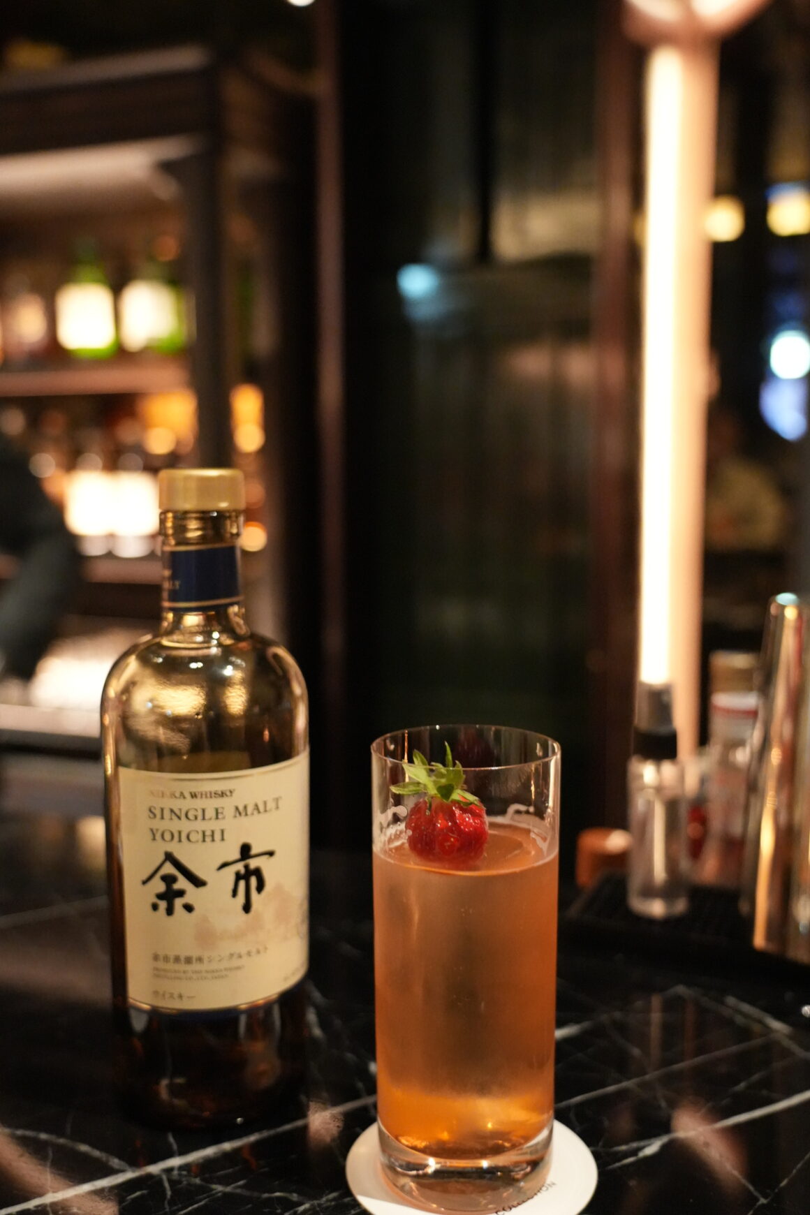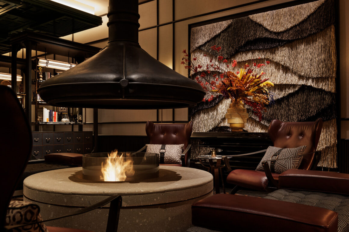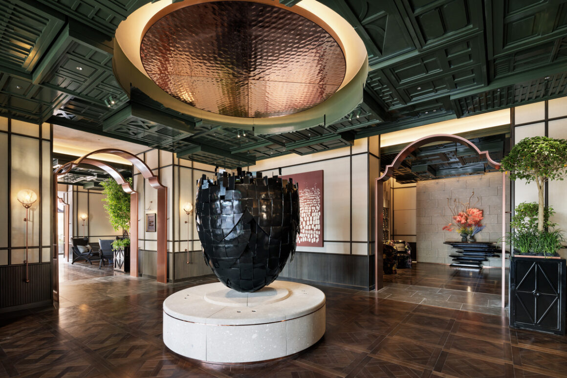 一走進飯店大門,立刻被黑色大型雕塑吸引。由日本藝術家川上理惠 (Rie Kawakami) 創作的黑色鐵製雕塑「Wild Hops」,表達出日本第一批國產啤酒花背後的實驗精神。飯店一樓大廳的設計融合了西方的優雅與日本的工藝,重現了 19 世紀沙龍的優雅氛圍。電梯間牆上展示了28 只懷錶,用以表達西方文化的來臨,與日本文化交融的時光。