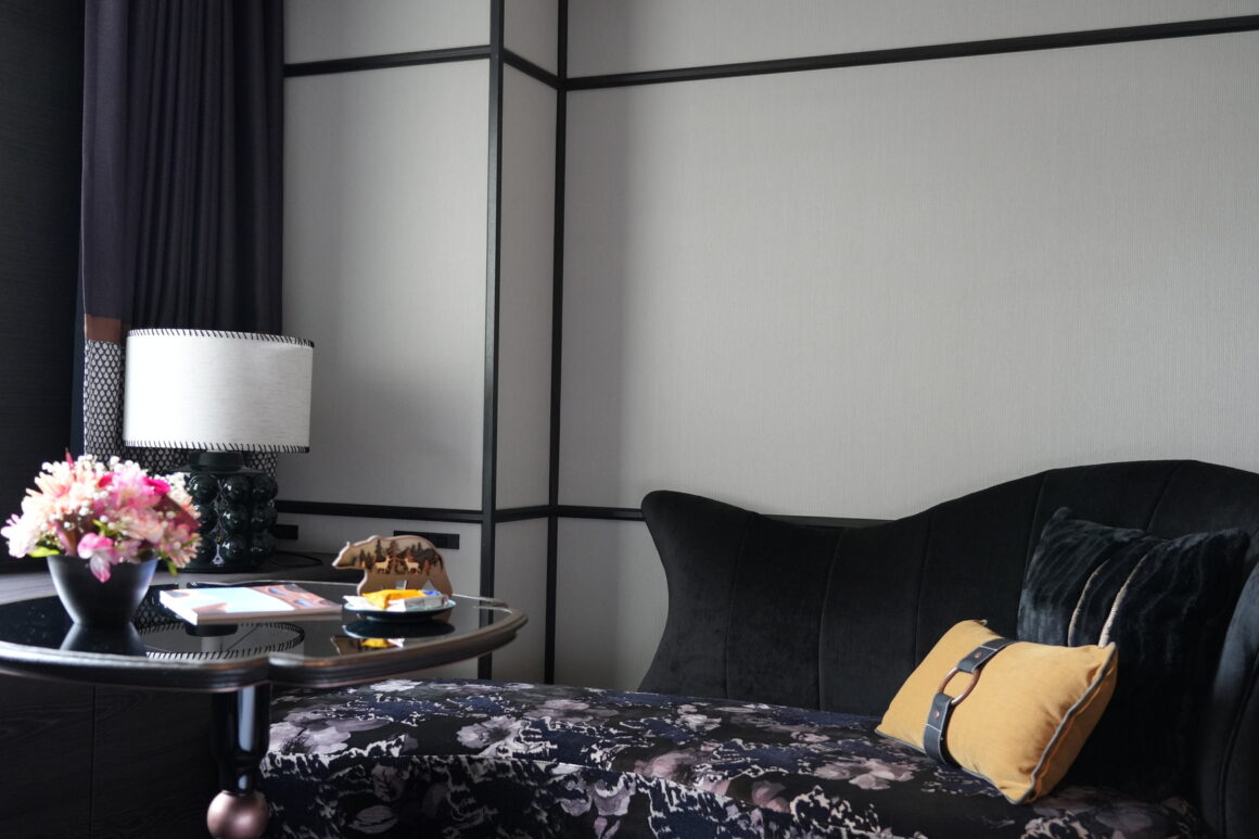Hotel Sosei Sapporo – MGallery Collection客房的設計靈感來自於19世紀末北海道早期住宅Kaitakushi Homes(開拓史住宅),特色在於結合了西式接待室與日式起居室,呼應好客日常。低調沉穩的色調,用溫暖的木材、馬術皮革、柔軟的和紙紋理達到平衡;當我拉開窗簾,明亮的陽光從窗外穿透,正好面對釀酒見學館,和煙囪打招呼。前文提到的啤酒花,巧妙地融合在房裡的設計,像是淋浴空間裡的燈罩、木質抽屜的把手、黑色沙發襯托粉色的花等,份外有意思。
