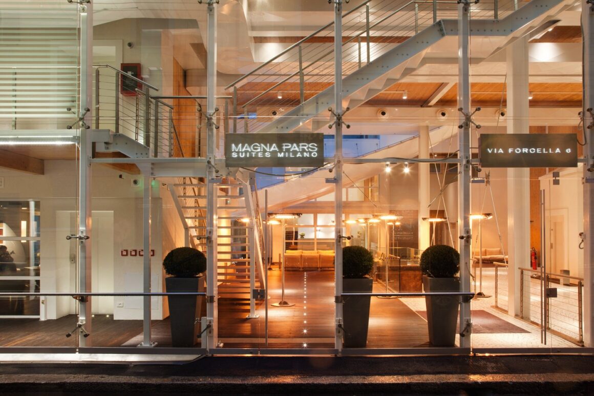 Magna Pars L’ Hotel à Parfum確切的位置在寧靜的弗切拉街(Via Forcella)與熱鬧的托托納街(Via Tortona)之間,大面玻璃帷幕以及鋼筋線條,充滿特色的現代建築,設計迷一定會喜歡哪。