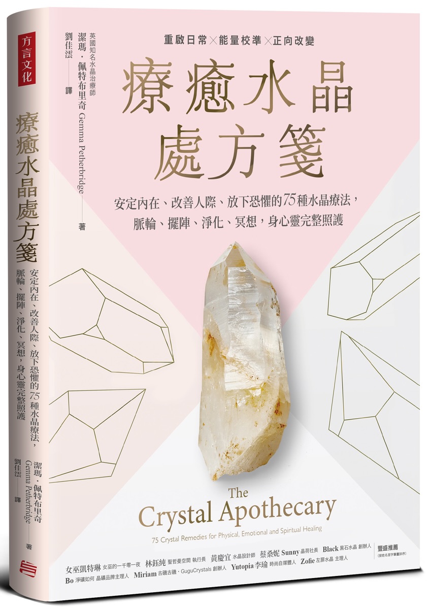 無論你是水晶圈小白、還是滿手水晶的資深玩家,由水晶療癒師潔瑪.佩特布里奇(Gemma Petherbridge)撰寫的 療癒水晶處方箋:安定內在、改善人際、放下恐懼的75種水晶療法,脈輪、擺陣、淨化、冥想,身心靈完整照護 一書,都能讓你收穫滿滿。現在,就跟著水晶療癒師3步驟:選、放、淨化,讓能量完美對頻!